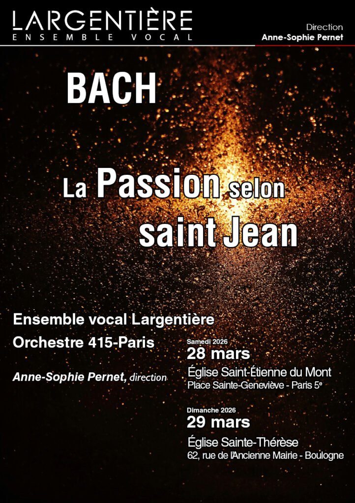 Cette saison spéciale débutera les samedi 28 et dimanche 29 mars 2026 avec une œuvre poignante et incontournable du répertoire choral sacré : La Passion selon saint Jean de Jean-Sébastien Bach.